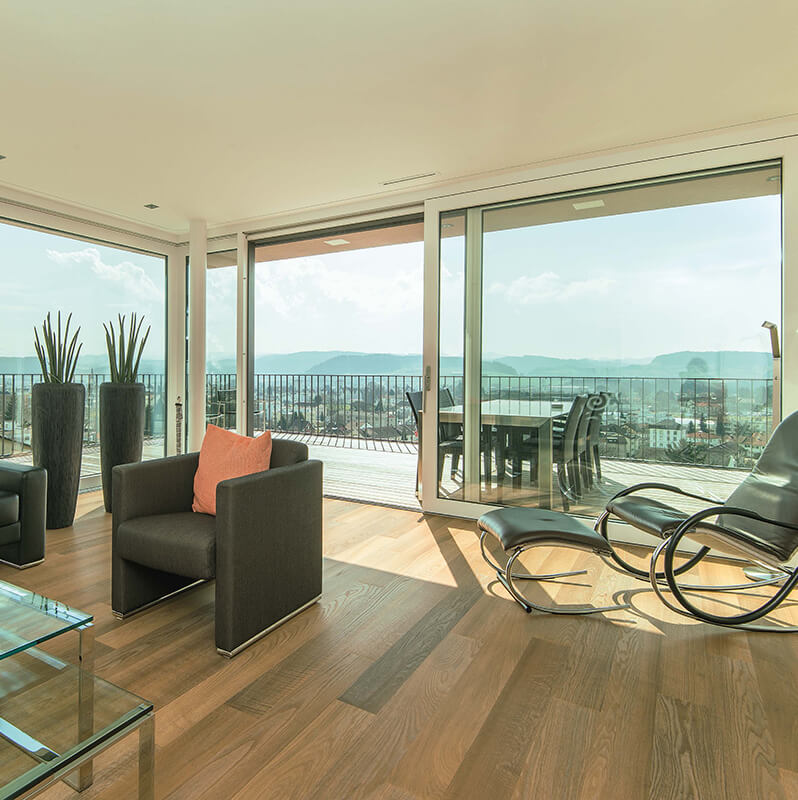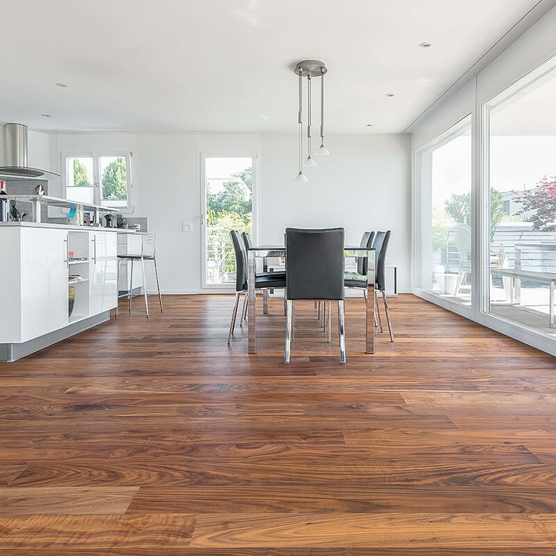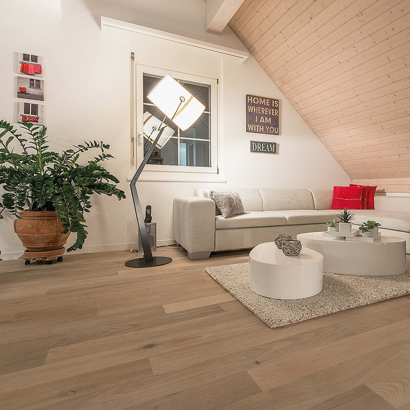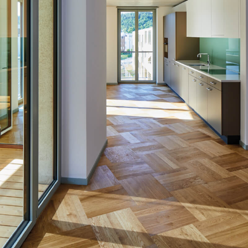 Die moderne Zweischicht-Parkettlinie besticht durch ihren Reichtum an Dimensionen, Holzarten und Oberflächen und ist so abwechslungsreich wie ihre Einsatzgebiete. Die geringe Einbaustärke von 10/11mm macht die SkyLine-Parkett zu idealen Bodenbelägen für den Umbau wie den Neubau.